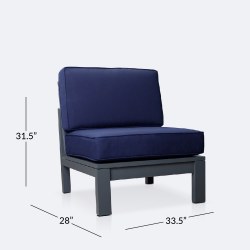 Enjoy premium comfort while creating a fashionable and modern outdoor ambiance with the Shoreline Collection. Powder-coated in rich grey, the aluminum frame offers impressive strength and weather-resistance. The thick plush cushions are covered in Sunbrella fabric. The modular pieces can be arranged in various ways, depending on the layout of your space and can also be combined with the deep seating conversation furniture for a truly customized arrangement. Achieve an effortlessly fashionable and modern look with the Shoreline aluminum outdoor patio collection.