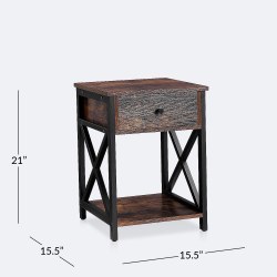 With an inviting look and a sturdy design, the Crosby Side Table embodies what living rooms were meant for - living. The table features ample storage with a second shelve and drawers. The black frame is made of metal while the second shelf and drawers are made of particle board covered in natural wood-look melamine high-pressure laminate.