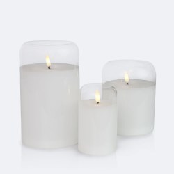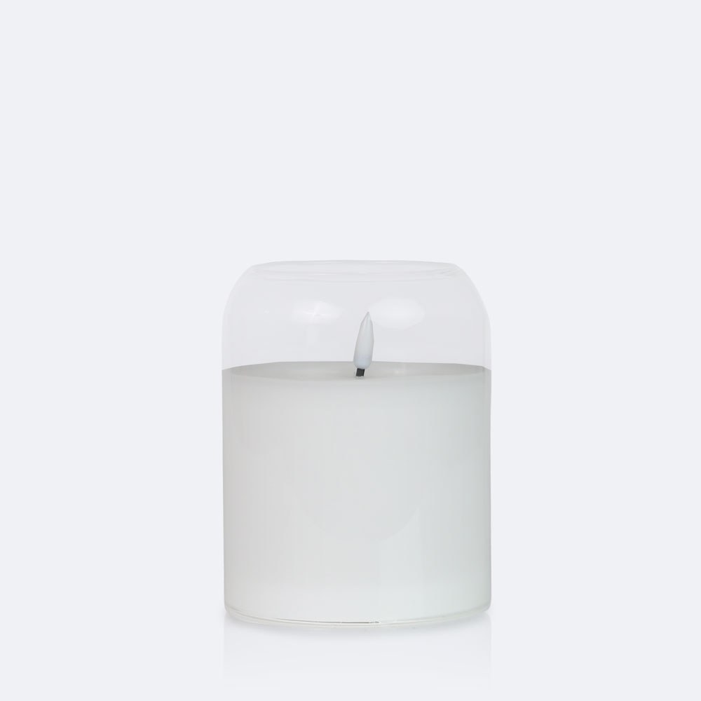 Bring effortless sophistication to any space with this LED candle featuring a realistic flickering flame inside a clear glass cylinder. The unique curved top edge adds a graceful touch, while the soft, warm glow creates the perfect ambiance for relaxing evenings, dinner settings, or decorative displays. Designed to capture the beauty of a real candle without the mess or safety concerns, this flameless piece combines timeless charm with modern convenience.